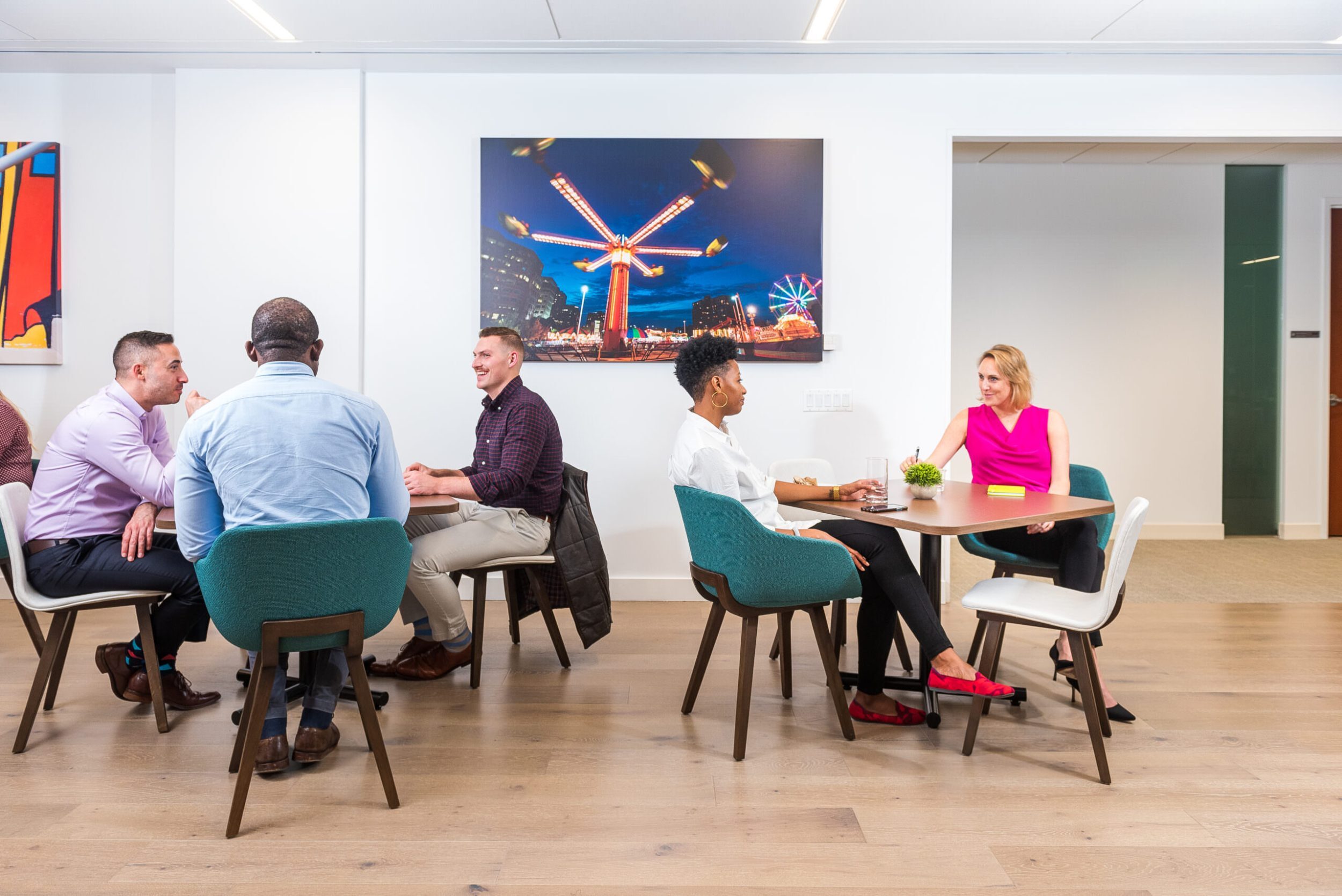 Use these informal opportunities to get to know the people working next to you. Even if you don’t talk business, learning basic information and getting more comfortable around each other will make it easier to approach them in a more formal and professional manner later.