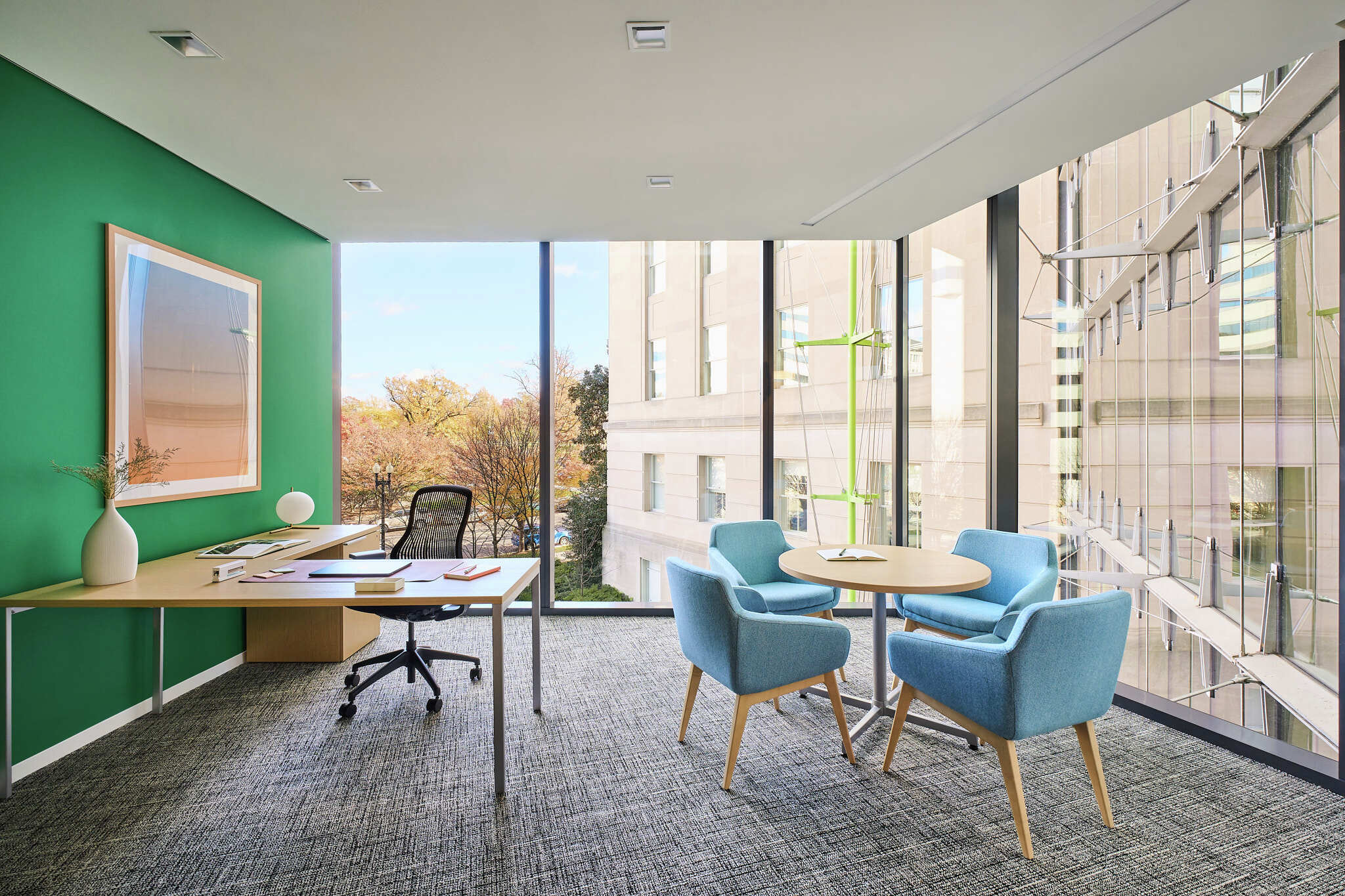 Elevate your workday at Carr Workplaces Capitol Hill, where sleek modern design meets the pulse of Washington, D.C.’s political scene. Our newly renovated workspace offers vibrant, collaborative common areas, a stylish café, and a sophisticated lobby for a seamless professional experience. Impress clients with stunning rooftop views of the U.S. Capitol and enjoy unparalleled proximity to landmarks like the Senate Office Buildings, the Supreme Court, and the SEC.